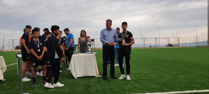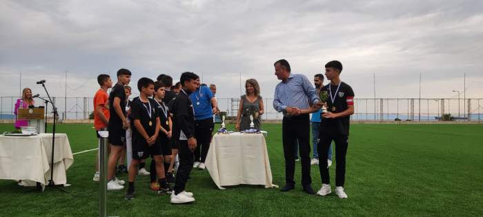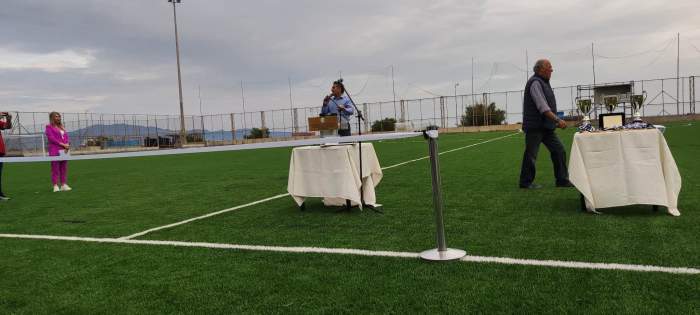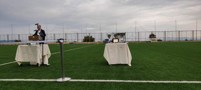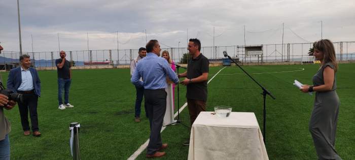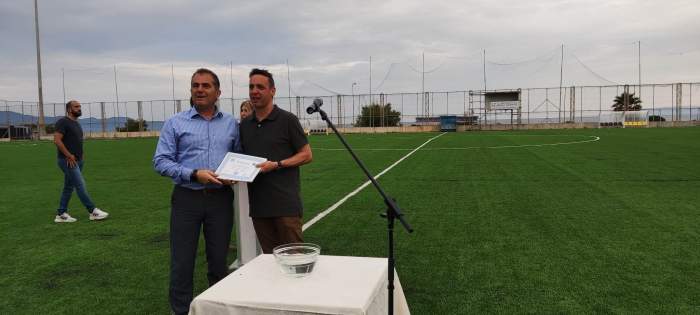 Να το χαίρονται τα παιδιά μας το νέο μας γήπεδο!”, συμπλήρωσε ο Περιφερειάρχης κατά τον χαιρετισμό του.