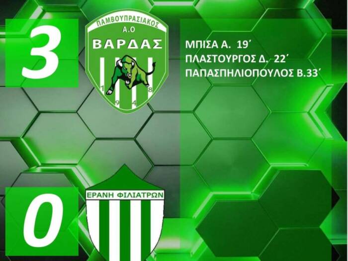 Ο ΠΑΟ Βάρδας νίκησε την Εράνη Φιλιατρών με 3-0 και ανέβηκε στους τρεις πόντους, ενώ οι φιλοξενούμενοι παρέμειναν στον ένα πόντο.