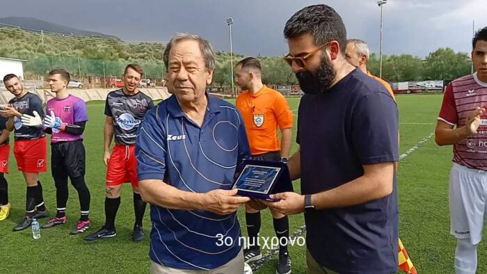 Τον άοκνο εργάτη του μεσσηνιακού και καλαματιανού αθλητισμού και ποδοσφαίρου, Τάκη Βασιλόπουλο, τίμησε σήμερα η Σπερχογεία, στο περιθώριο του αγώνα με την Θύελλα Χαρακοπιού, για την καθοριστική συμβολή του στα έργα αναβάθμισης του γηπέδου.