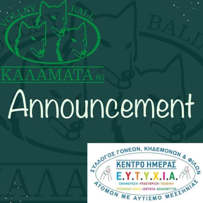 💪🐺 Με υπερηφάνεια και υπευθυνότητα από την Κυριακή 5 Νοεμβρίου (και κάθε Κυριακή) ξεκινά η Καλαμάτα 80 ASD (Autism Spectrum Disorder) Volleyball Academy σε συνεργασία με το Κέντρο Ημέρας Ε.Υ.Τ.Υ.Χ.Ι.Α.