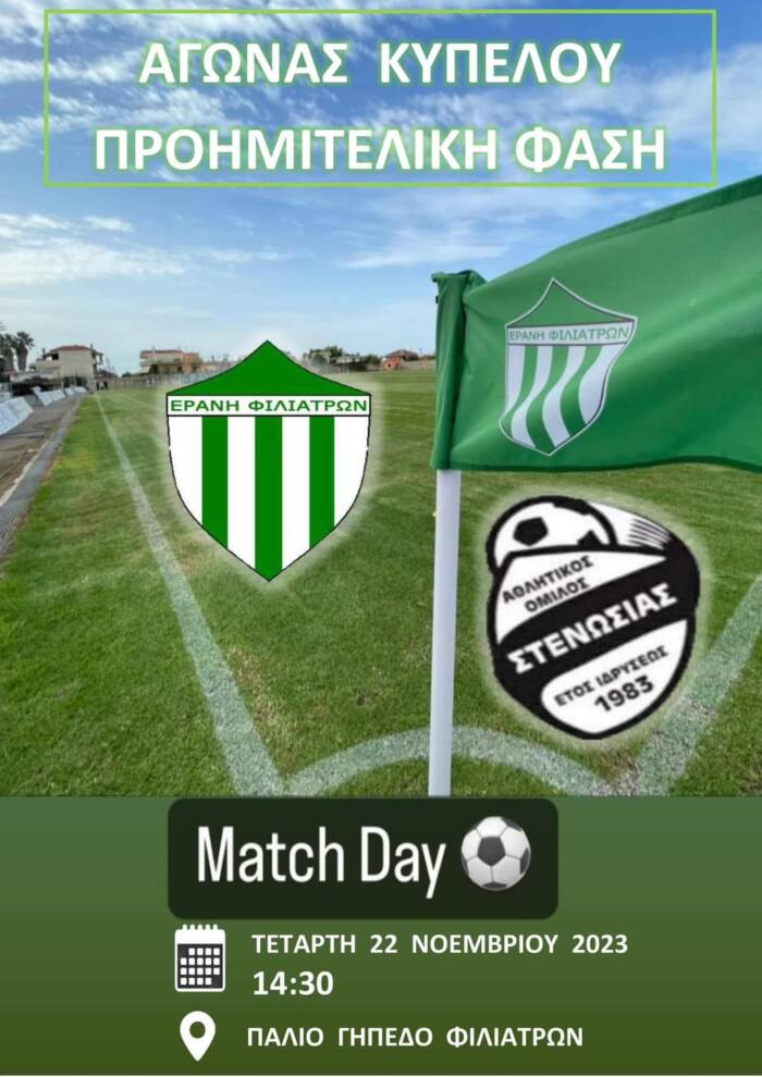 Την πρόκριση στην ημιτελική φάση του κυπέλλου Μεσσηνίας πήρε σήμερα η Εράνη Φιλιατρών που επικράτησε στο γήπεδο της με 5-0 του ΑΟ Στενωσιάς.