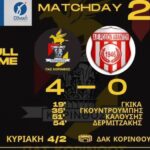 Ο Παναργειακός νίκησε εντός έδρας τον Ιάλυσο Ρόδου με 4-0 και ανέβηκε στους 39 πόντους, ενώ οι φιλοξενούμενοι παρέμειναν στους 27 πόντους.