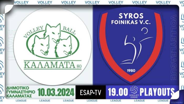 | 10/03/2024: | Volley League | Play Out | Α.Ο.Καλαμάτα 80 – Α.Ο.Φοίνικας Σύρου | |