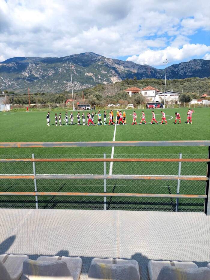 Οι “Μανιάτες” βρέθηκαν με τη λήξη του πρώτου ημιχρόνου να προηγούνται με σκορ 1-0 χάρη σε εύστοχη εκτέλεση πέναλτι του Κυριακού Πουλάκου στο 45′ ενώ στο δεύτερο μέρος ακολούθησε καταιγισμός απο γκολ.