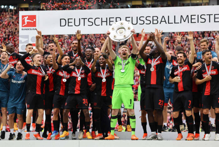 Η Μπάγερ Λεβερκούζεν όχι μόνο κατέκτησε την πρώτη της “σαλατιέρα”, αλλά το έκανε με ιστορικό τρόπο. Έγινε η πρώτη ομάδα που σηκώνει αήττητη τη Bundesliga. Τώρα, στρέφει την προσοχή της στο να πετύχει το treble. Η Ουνιόν στα μπαράζ κόντρα στην Φορτούνα του Χρήστου Τζόλη
