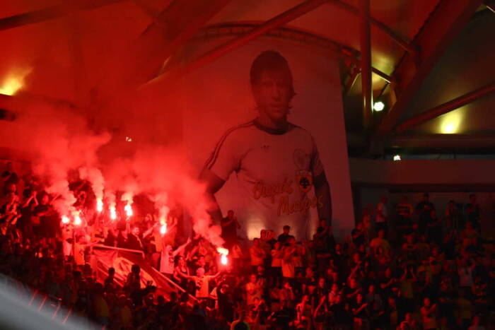 Οι οπαδοί της ΑΕΚ άναψαν καπνογόνα στο παιχνίδι με τη Λαμία στην OPAP Arena, αλλά μία κροτίδα που φέρεται να έπεσε στον αγωνιστικό χώρο, ήταν αυτή που οδήγησε στην τιμωρία της μίας αγωνιστικής κατά της Ένωσης.