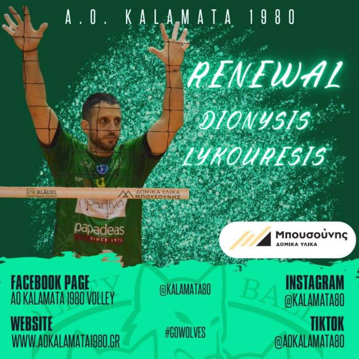 Η διοίκηση της Καλαμάτας ’80 ανακοίνωσε την ανανέωση συνεργασίας για τρίτη συνεχόμενη χρονιά του αθλητή Διονύση Λυκουρέση.