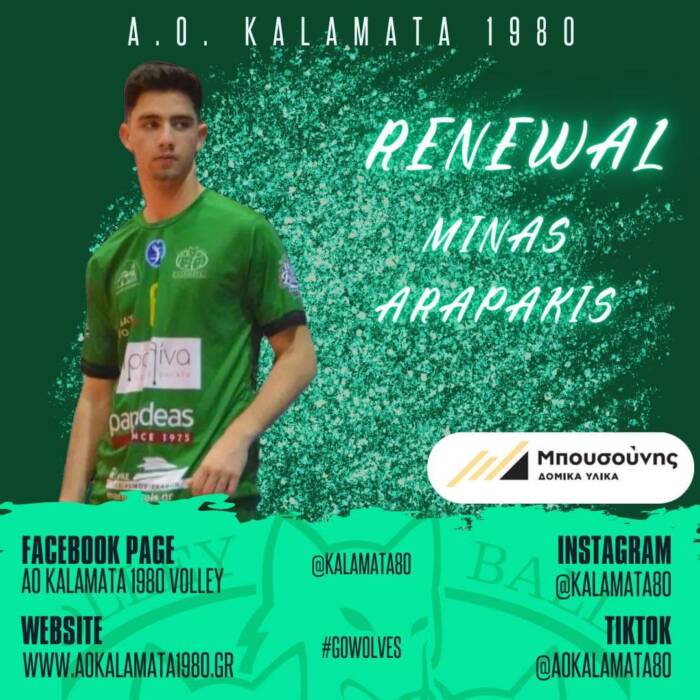 🤝 Η διοίκηση του συλλόγου μας ανακοινώνει την ανανέωση της συνεργασίας μας με τον διεθνή αθλητή μας Μηνά Αραπάκη!