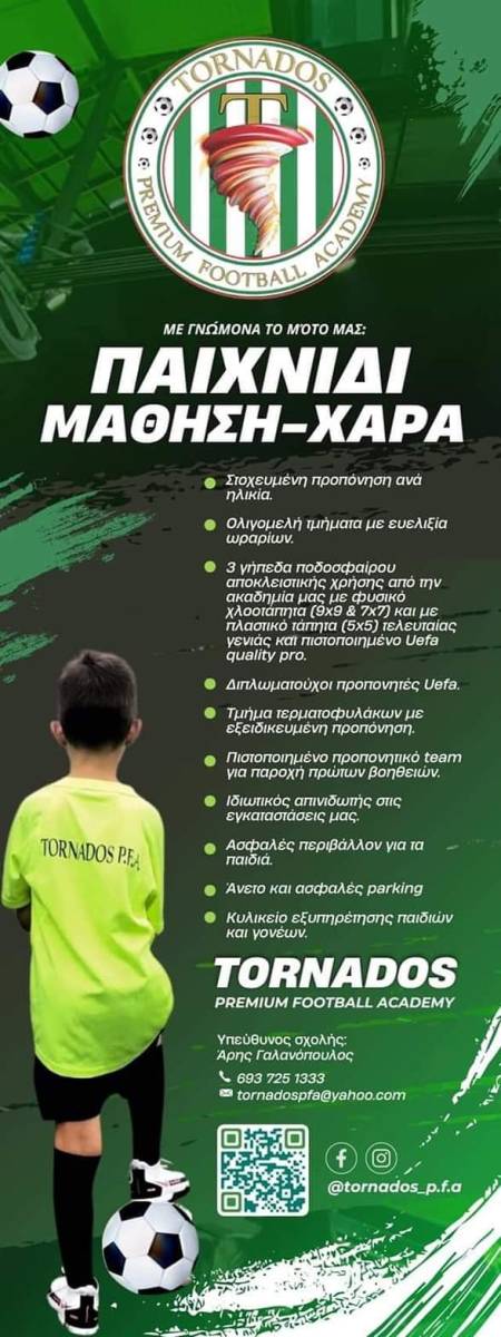 Taklin.gr > ΕΠΣ Μεσσηνίας > TORNADOS PFA: Ξεκινούν οι ακαδημίες για 9η συνεχή χρονιά