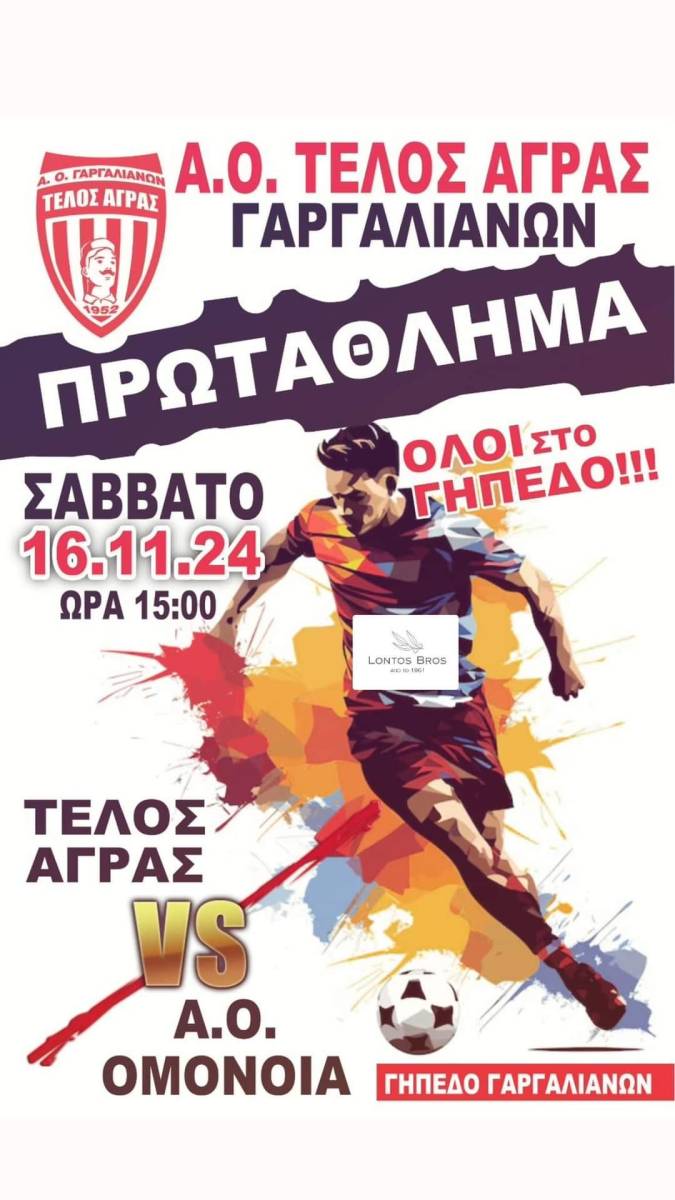 Ο αγώνας Τέλλος Άγρας – ΑΟ Ομόνοια, ανοίξει την αγωνιστική στο πρωτάθλημα της Α’ Τοπικής κατηγορίας.