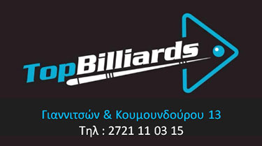 Top Billiards. Γιαννιτσών και Κουμουνδούρου 13 Καλαμάτα. Τηλ. 2721110315.