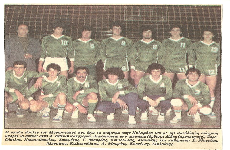 Ένα ξεχωριστό και πολύ σημαντικό αθλητικό και όχι μόνο γεγονός θα γίνει αυτό το Σάββατο 22 Φεβρουαρίου στο “Tapas”(Δίος Ιθώματα 6, Ιστορικό Κέντρο Καλαμάτα). Πιο συγκεκριμένα από τις 6 το απόγευμα μέχρι τις 9 το βράδυ θα συναντηθούν παίκτες, προπονητές, παράγοντες και φίλοι της μεγάλης ομάδας βόλεϊ του Μεσσηνιακού, που πρωταγωνίστησε στις εθνικές κατηγορίες το χρονικό διάστημα 1974-1990.