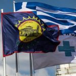 Με το λάβαρο στο χέρι πρώτος ο επικεφαλής του Συλλόγου “Ελληνομνήμονες” Σπύρος Κατσίρας.