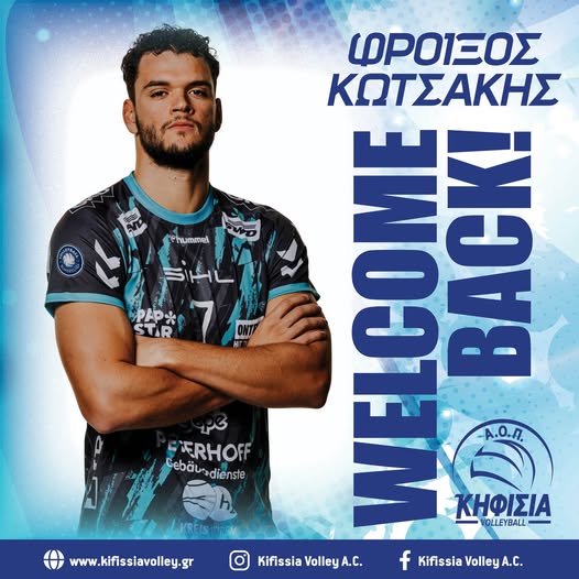 Ο Αθλητικός Όμιλος Πετοσφαίρισης Κηφισιάς ανακοινώνει την έναρξη της συνεργασίας του με τον Φροίξο Κωτσάκη για την αγωνιστική περίοδο 2025-26. Ο 26χρονος ακραίος (01/05/1999, 1.95μ.) επιστρέφει στο Ζηρίνειο μετά τη σεζόν 2021-22.
