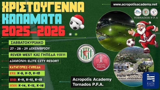 27 με 28 Δεκεμβρίου 2025 η πόλη μας θα φιλοξενήσει αγώνες ποδοσφαίρου για παιδιά δημοτικού και γυμνασίου.