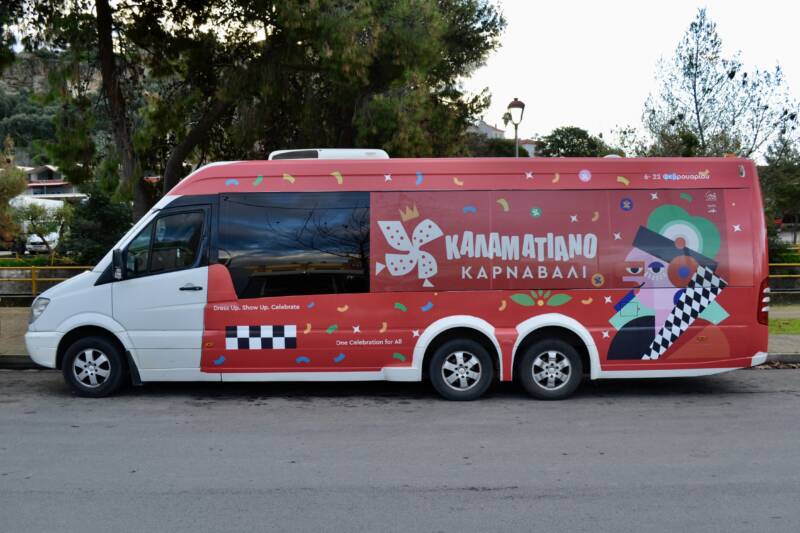 Σε συνεργασία με το Αστικό ΚΤΕΛ Καλαμάτας, το οποίο παραχώρησε δωρεάν ένα από τα αστικά λεωφορεία του, ένα λεωφορείο της πόλης «ντύθηκε» στα χρώματα και το ύφος του Καλαματιανού Καρναβαλιού, μεταφέροντας το μήνυμα της γιορτής σε κάθε γειτονιά.