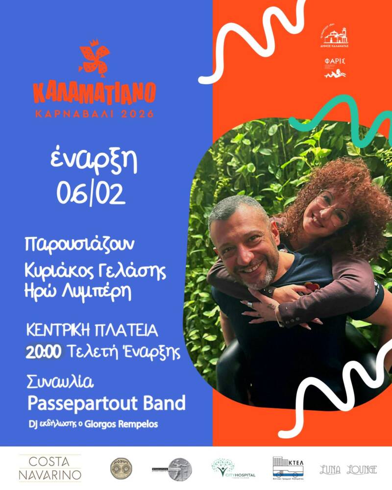 Το Καλαματιανό Καρναβάλι δίνει το επίσημο έναυσμα της φετινής αποκριάτικης περιόδου με τη Μεγάλη Τελετή Έναρξης του 13ου Καλαματιανού Καρναβαλιού, την Παρασκευή 6 Φεβρουαρίου 2026, στις 20:00, στην Κεντρική Πλατεία Καλαμάτας, έναντι του Πνευματικού Κέντρου.