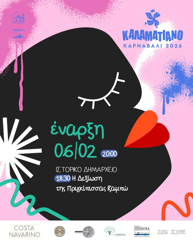 Το Καλαματιανό Καρναβάλι δίνει το επίσημο έναυσμα της φετινής αποκριάτικης περιόδου με τη Μεγάλη Τελετή Έναρξης του 13ου Καλαματιανού Καρναβαλιού, την Παρασκευή 6 Φεβρουαρίου 2026, στις 20:00, στην Κεντρική Πλατεία Καλαμάτας, έναντι του Πνευματικού Κέντρου.