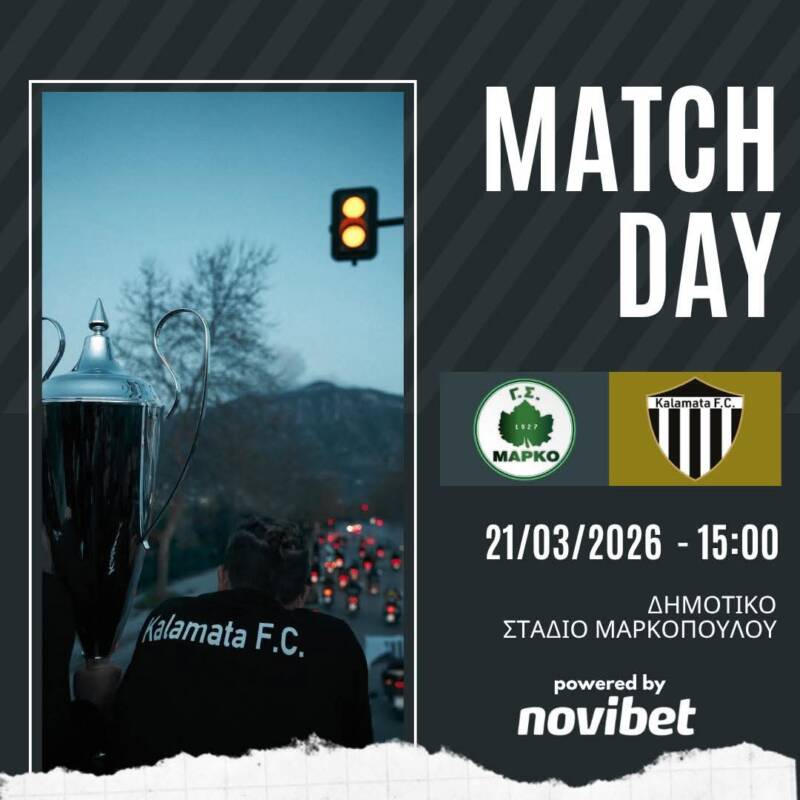 Η αυλαία της φετινής παρουσίας της Καλαμάτας στη Super League 2 πέφτει σήμερα στο Μαρκόπουλο, με τη «Μαύρη Θύελλα» να αντιμετωπίζει τη Μαρκό στην τελευταία της αναμέτρηση για τα πλέι οφ του Νοτίου Ομίλου.