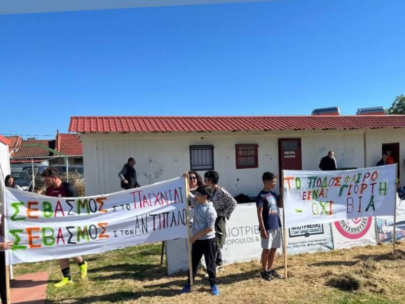 Παιδιά των ακαδημιών μπήκαν στον αγωνιστικό χώρο κρατώντας πανό με συνθήματα κατά της βίας, όπως «Σεβασμός στο παιχνίδι – Σεβασμός στον αντίπαλο» και «Το ποδόσφαιρο είναι γιορτή, όχι βία», στέλνοντας ένα ηχηρό μήνυμα προς όλους. Η εικόνα αυτή έδωσε έναν ιδιαίτερο τόνο στο παιχνίδι, υπενθυμίζοντας πως το ποδόσφαιρο είναι πάνω απ’ όλα αξίες, παιδεία και σεβασμός.