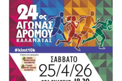 Ο Σύλλογος Δρομέων Υγείας Μεσσηνίας διοργανώνει τον 24ο Αγώνα Δρόμου Καλαμάτας, το…