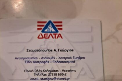 Τις θερμές της ευχαριστίες προς τον κ. Γεώργιο Σταματόπουλο, ιδιοκτήτη αντιπροσωπείας τροφίμων,…