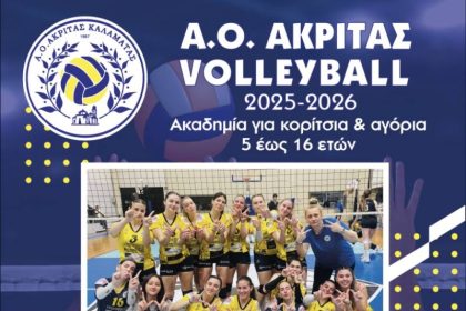 Ανακοινώνει την έναρξη της Ακαδημίας Βόλεϊ για κορίτσια και αγόρια 5 έως 16…