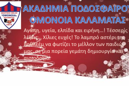 Η Ακαδημία ποδοσφαίρου Ομόνοια εύχεται αγάπη, υγεία, ελπίδα και ειρήνη.