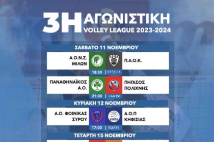 To πρόγραμμα της 3ης και της 4ης αγωνιστικής στη Volley League 2023-24:…